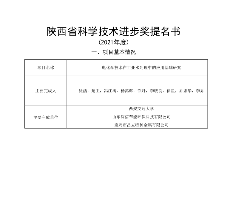 根據陜西省科技獎勵有關要求,現將我司2020年度陜西省科技獎合作申報項目 “電化學技術在工業水處理中的應用基礎研究”信息在公司主頁(http://www.v885.cn/)上公布,向全校征詢異議。